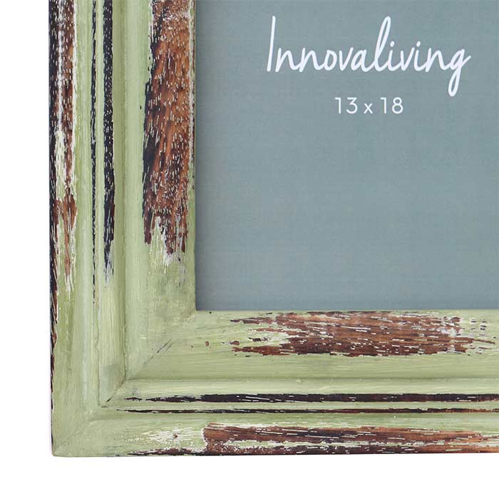 Mango wood photo frame with light green antique finish. For 13x18 photos