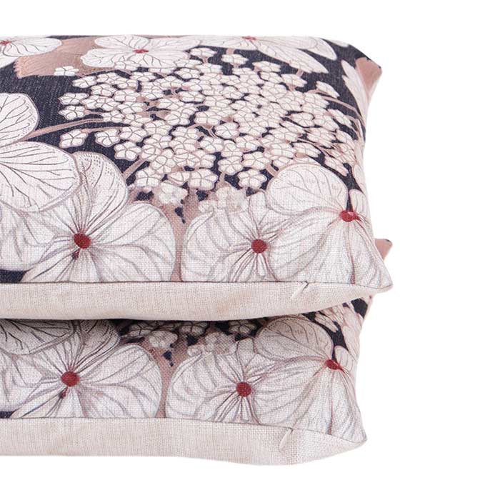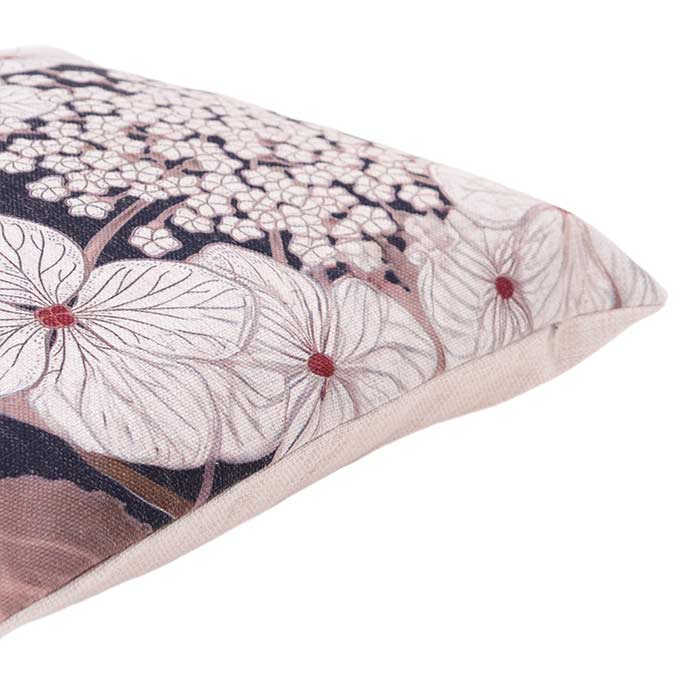 Cushion made of cotton blend, with print on one side, hidden zip closure. The padding is included and the cushion is removable.