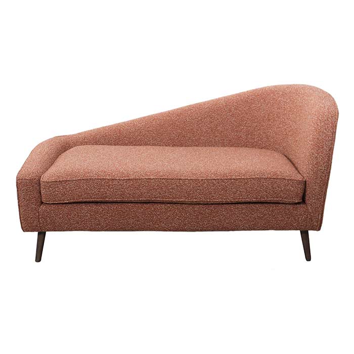 Sofa made of terracotta and white melange fabric, with wooden feet.