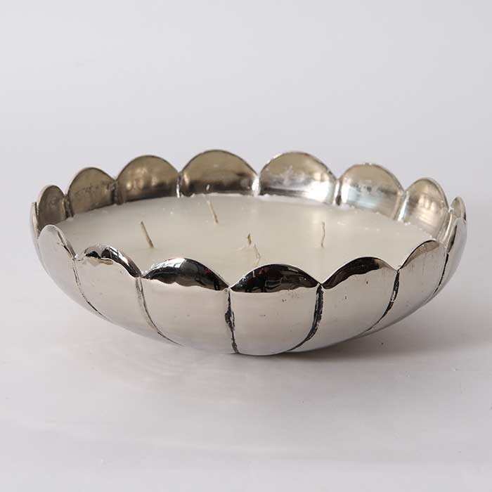 Aluminum container, shiny silver finish, with cotton-scented candle, 9 wicks.