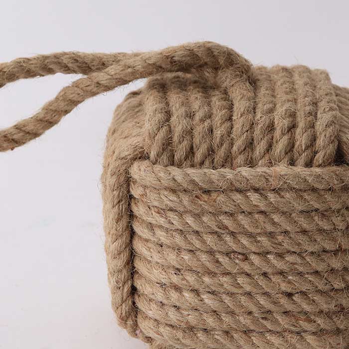 Square doorstop made of jute, natural finish, with handle. Weight 1.5 kg.