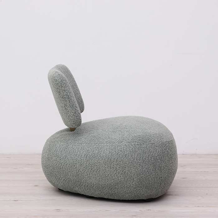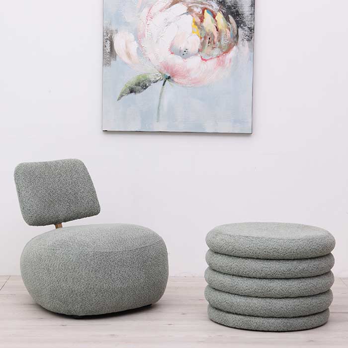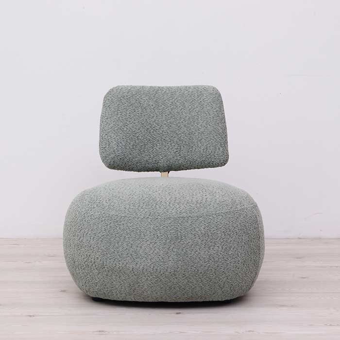Poltrona con rivestimento in tessuto boucle verde salvia.