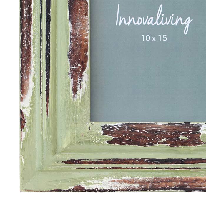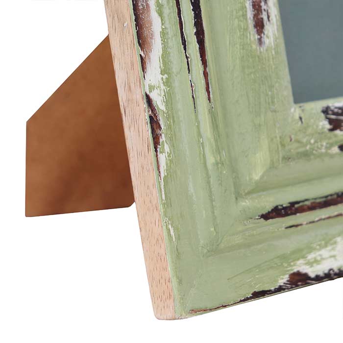 Portafoto in legno di mango con finitura verde chiaro anticata. Per foto 10x15