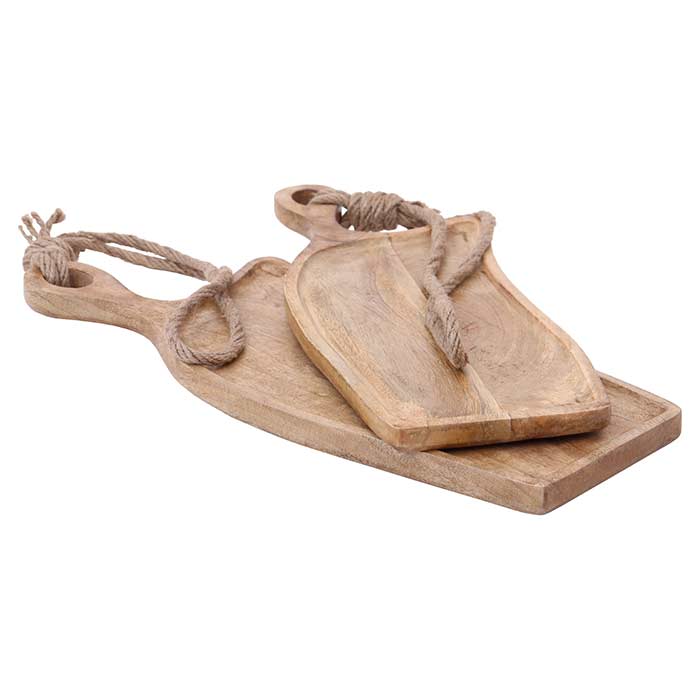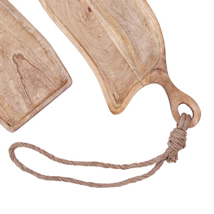 Set due taglieri in legno, finitura light burnt, dalla forma irregolare.