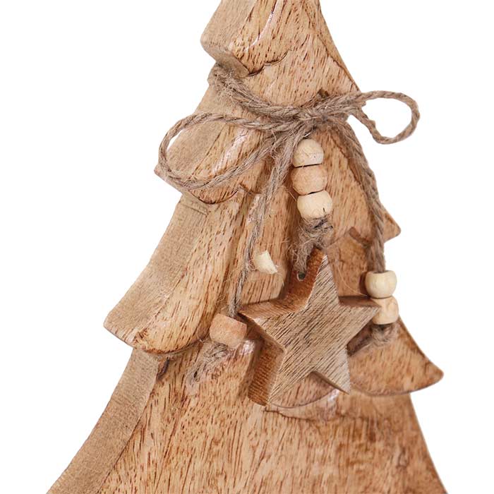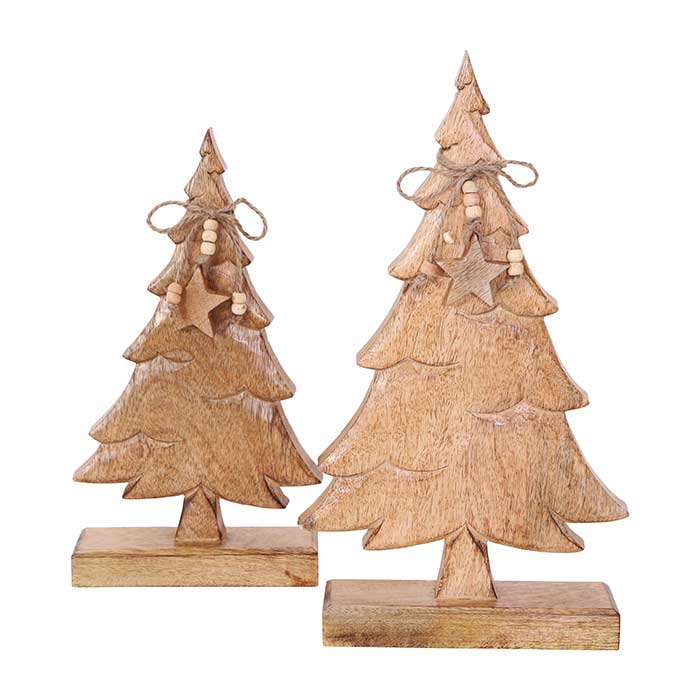 Set due alberi in legno con decorazione stella, realizzato in legno finitura light burnt.