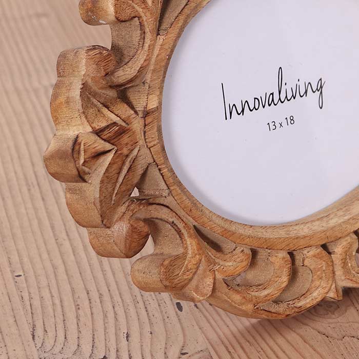Set due portafoto con cornice intagliata in legno, finitura light burnt. Per foto 10x15 e 13x18.