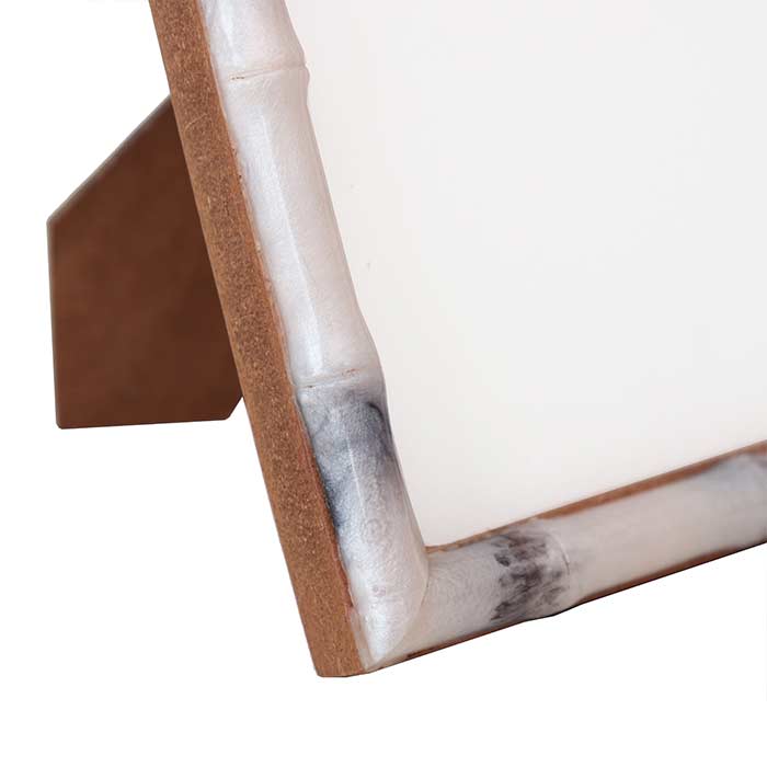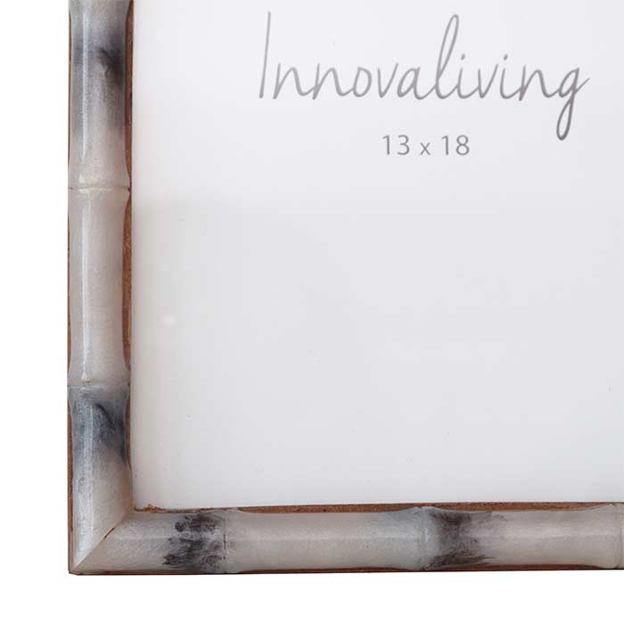 Portafoto con struttura in MDF e cornice in resina effetto bamboo finitura naturale. Per foto 13x18