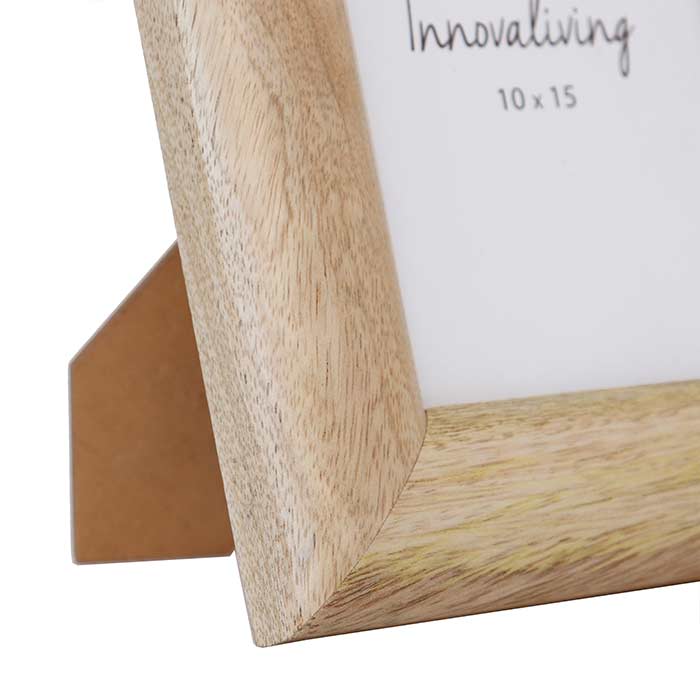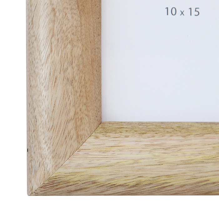 Portafoto con struttura in MDF e cornice rivestita in legno di mango finitura naturale. Per foto 10x15
