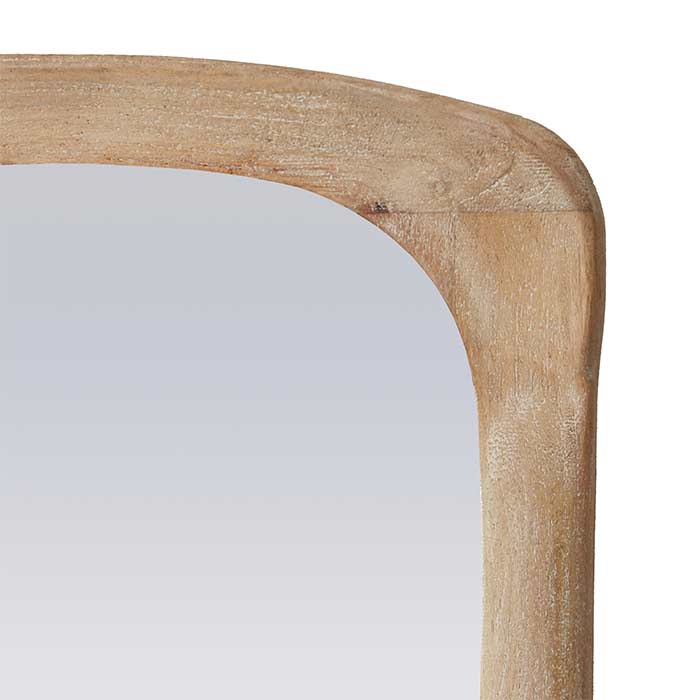Specchio rettangolare con cornice sinuosa in legno, finitura sabbiata bianca.