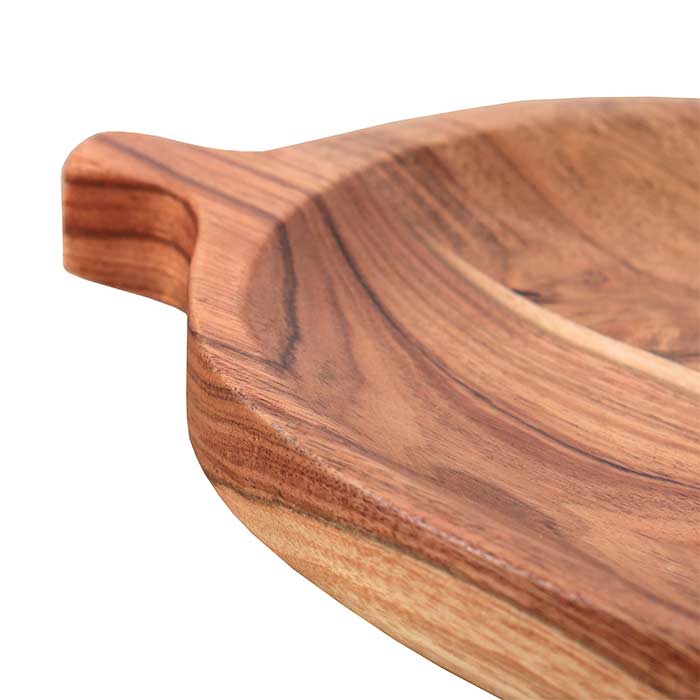 Vassoio a forma di foglia, realizzato in legno di acacia, trattato con finitura ad olio.