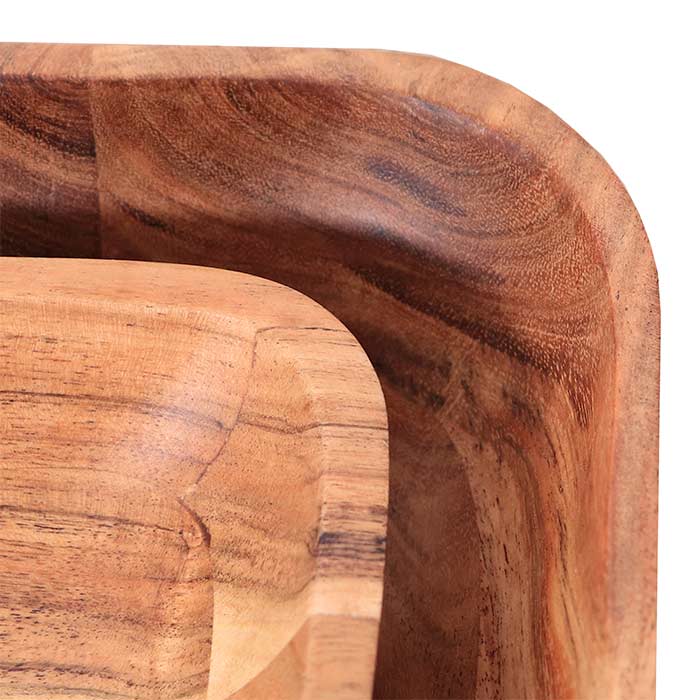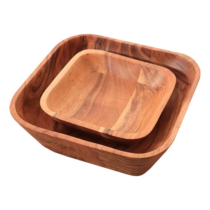 Set due ciotole quadrate, realizzate in legno di acacia, trattate con finitura ad olio.