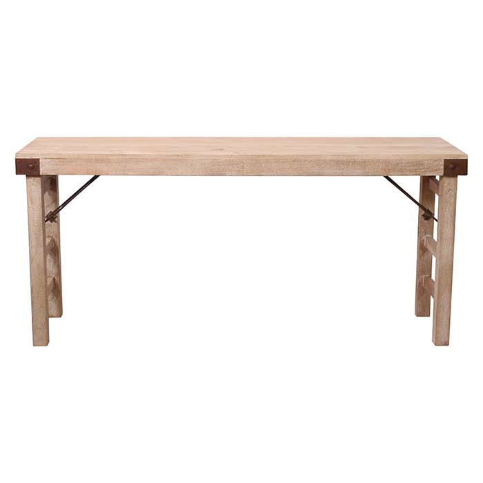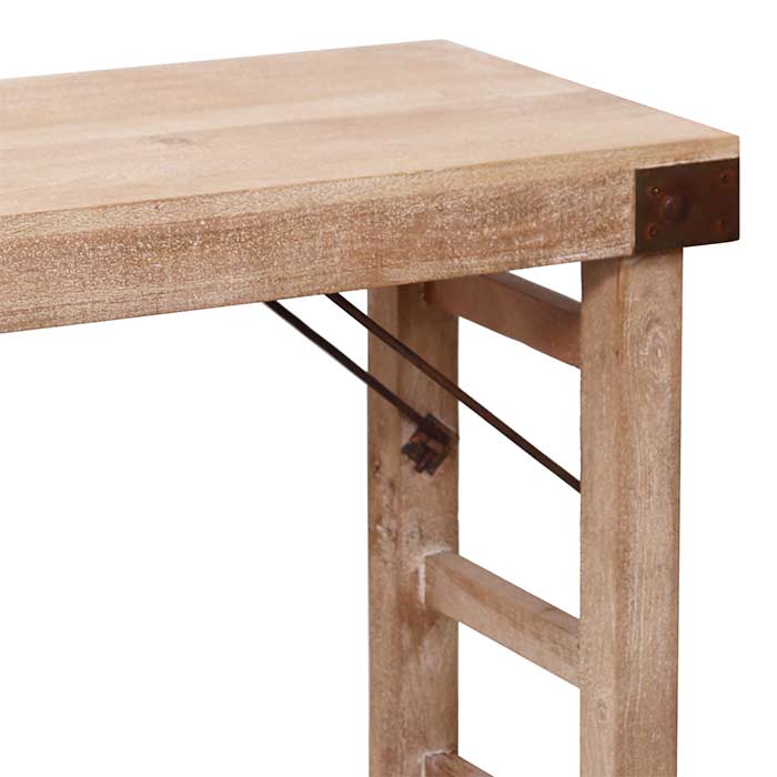 Consolle in legno di mango, finitura sabbiata bianca, con elementi in metallo finitura anticata.