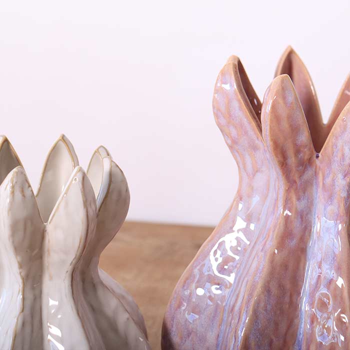 Set due vasi realizzati in ceramica, finitura rosa e bianco.