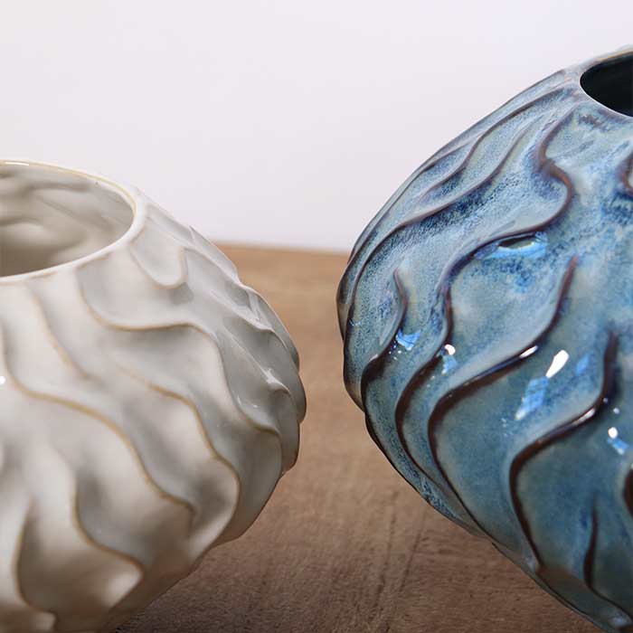 Set due vasi realizzati in ceramica, finitura blu e bianca.