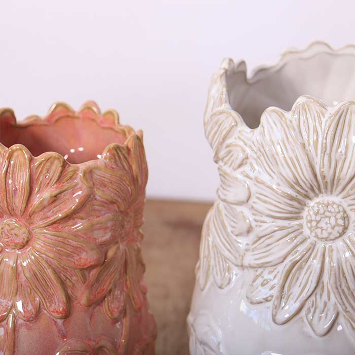 Set due vasi realizzati in ceramica, finitura bianca e rosa.