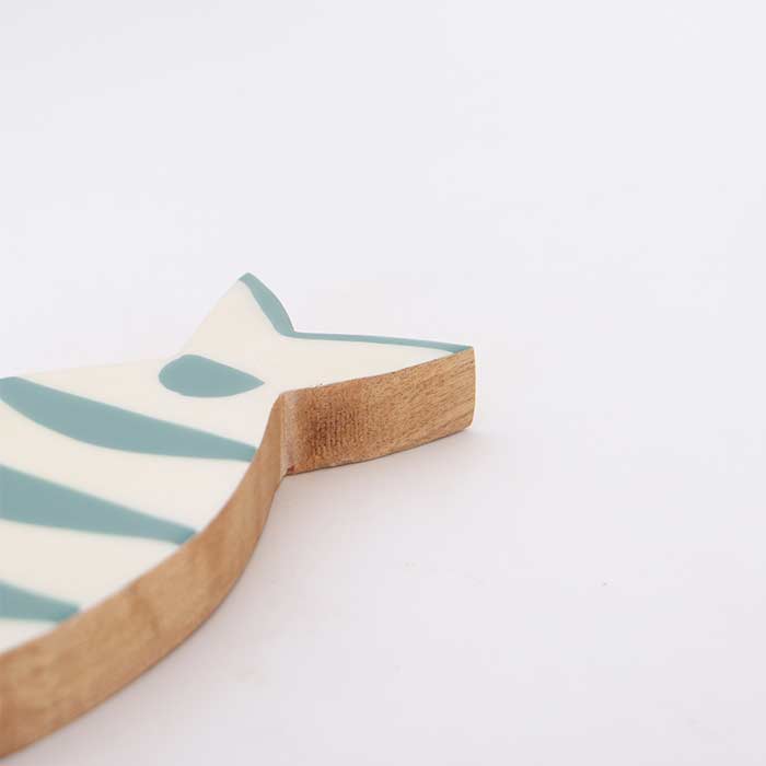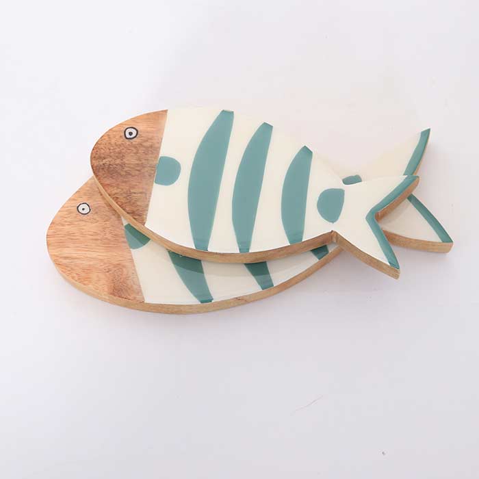 Set due decorazioni a forma di pesce, realizzate in legno di mango, con decorazione laccata lucida.