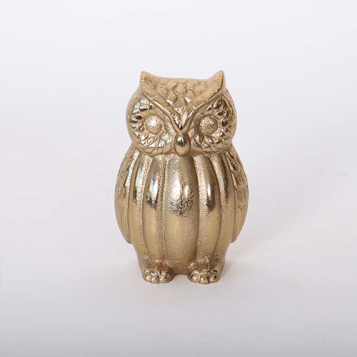 Decorazione a forma di gufo realizzata in alluminio, finitura campagne.