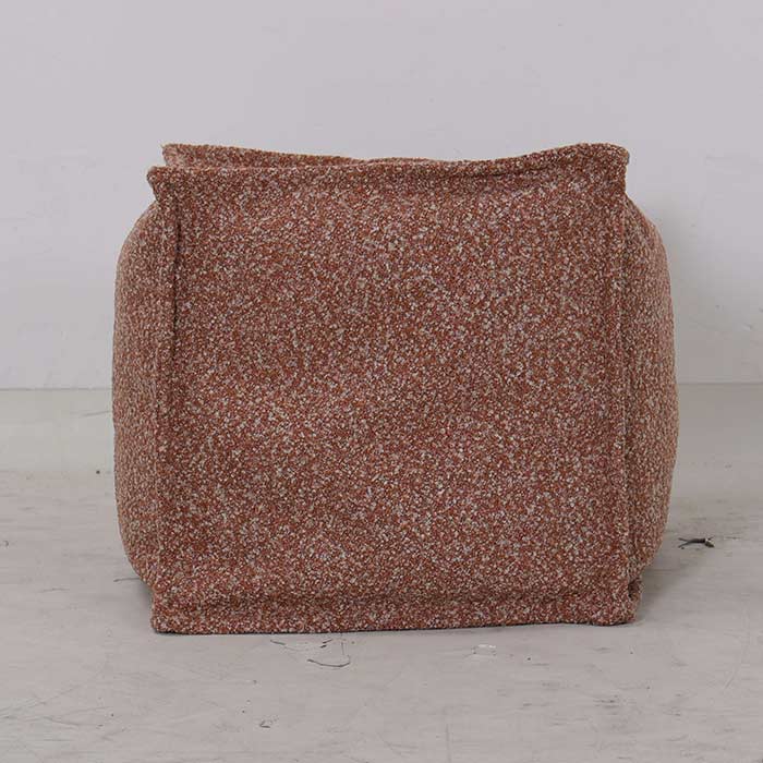 Pouff quadrato realizzato in tessuto melange color terracotta e bianco.