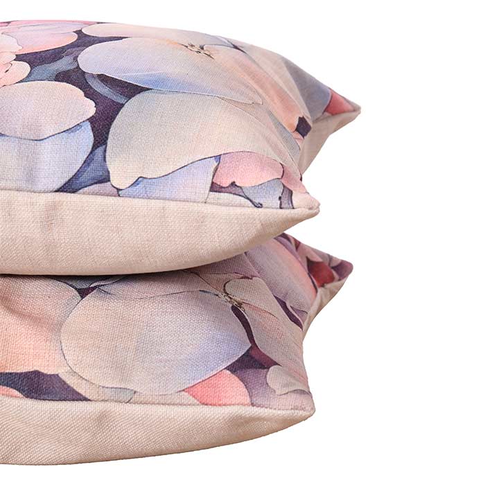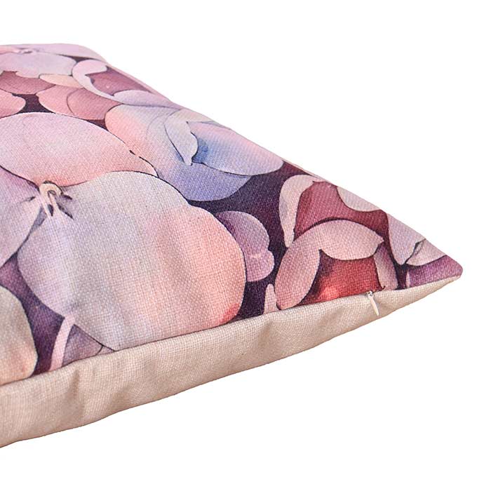 Cuscino realizzato in misto cotone, con stampa su un lato, chiusura con cerniera nascosta. L'imbottitura è compresa ed il cuscino è sfoderabile.