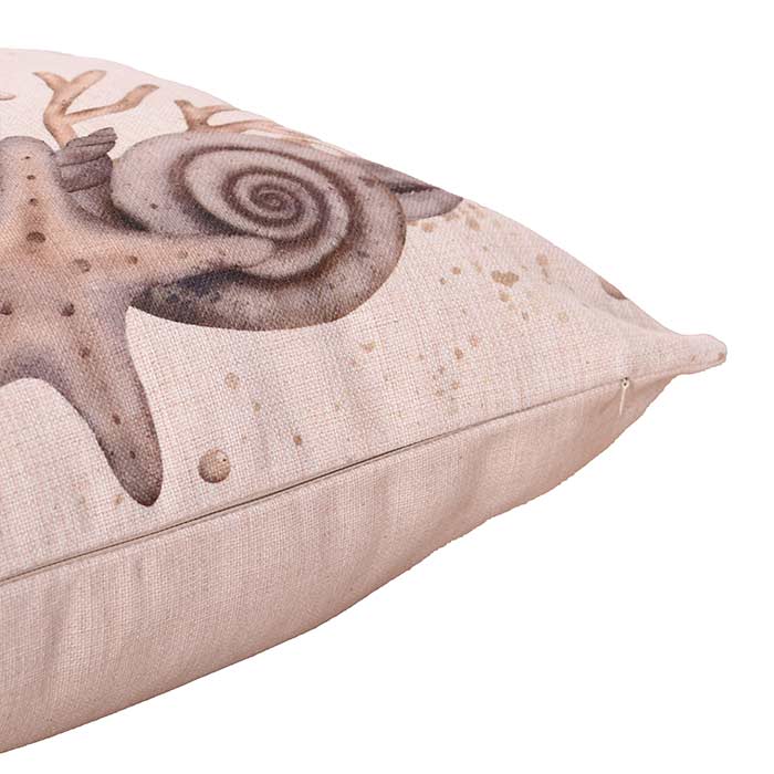 Cuscino realizzato in misto cotone, con stampa su un lato, chiusura con cerniera nascosta. L'imbottitura è compresa ed il cuscino è sfoderabile.