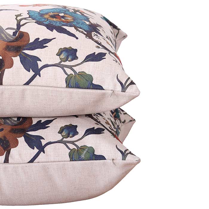 Cuscino realizzato in misto cotone, con stampa su un lato, chiusura con cerniera nascosta. L'imbottitura è compresa ed il cuscino è sfoderabile.