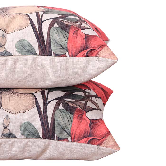 Cuscino realizzato in misto cotone, con stampa su un lato, chiusura con cerniera nascosta. L'imbottitura è compresa ed il cuscino è sfoderabile.