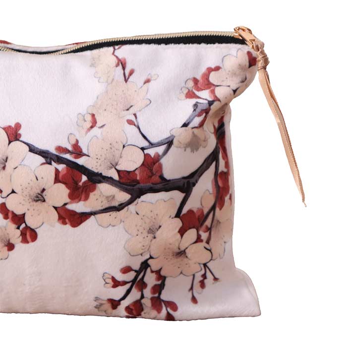 Pochette in tessuto con stampa su entrambi i lati. Chiusura con cerniera