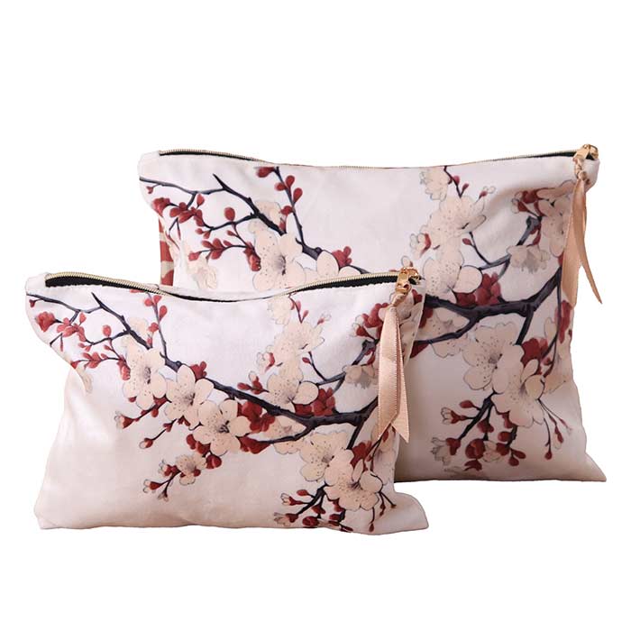 Pochette in tessuto con stampa su entrambi i lati. Chiusura con cerniera