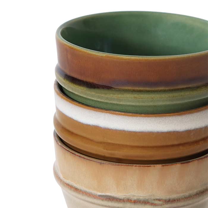 Contenitore in ceramica in tre colori assortiti: beige, marrone e verde, con effetto sfumato.