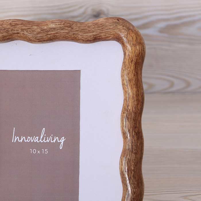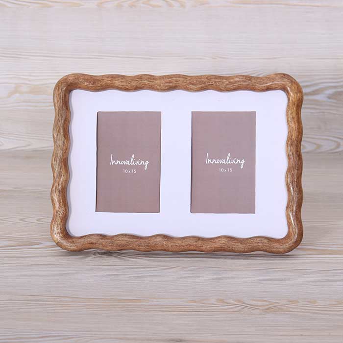 Portafoto con struttura in MDF e cornice in legno di mango finitura naturale. Per due foto 10x15