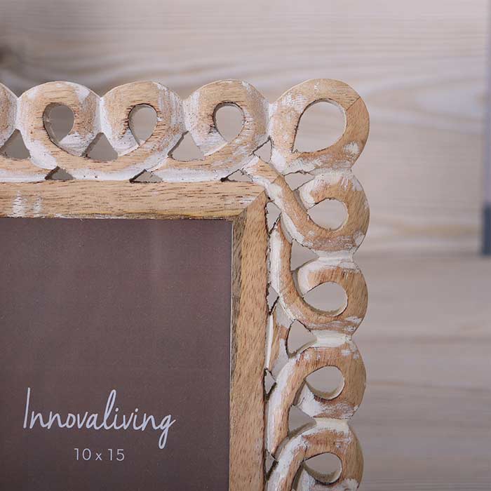 Set 3 portafoto realizzato in MDF con cornice sagomata e finitura white wash. Per foto 10x15, 13x18 e 15x20
