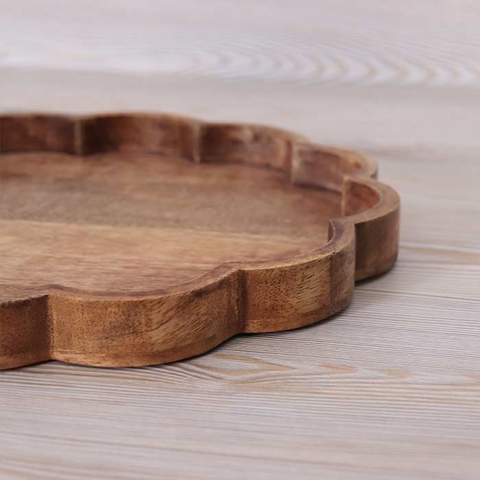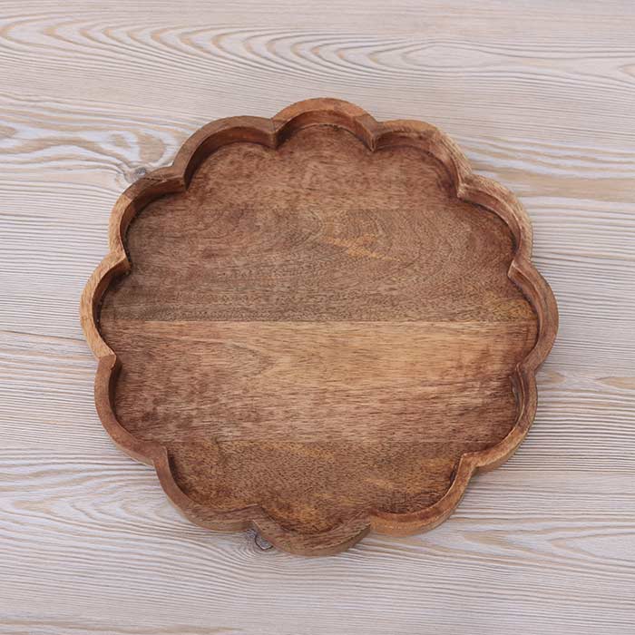 Vassoio tondo, realizzato in legno di mango, finitura naturale.