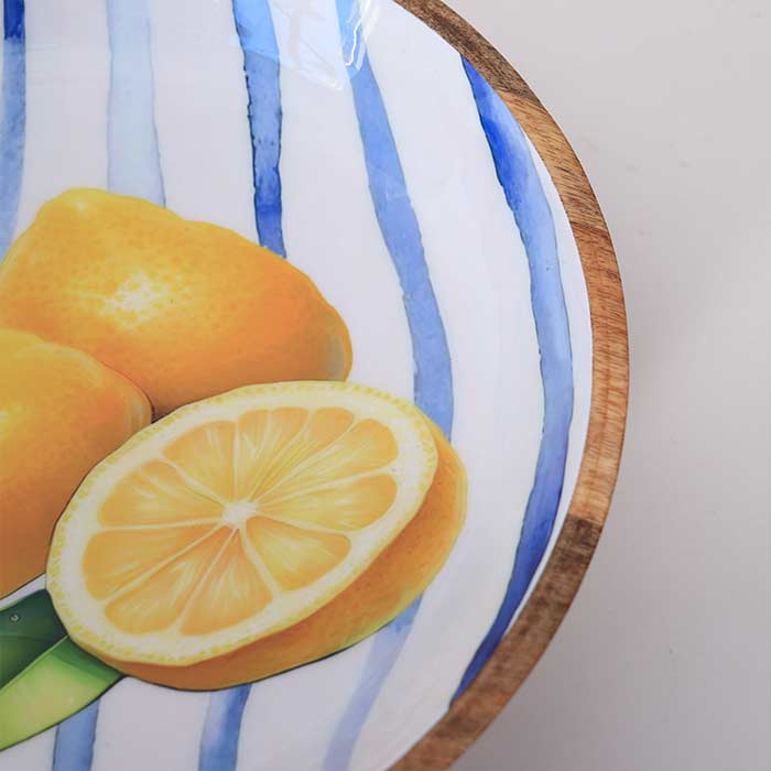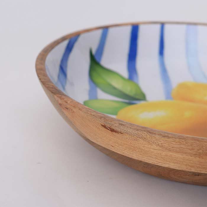Ciotola tonda, realizzato in legno di mango, con decorazione laccata lucida.
