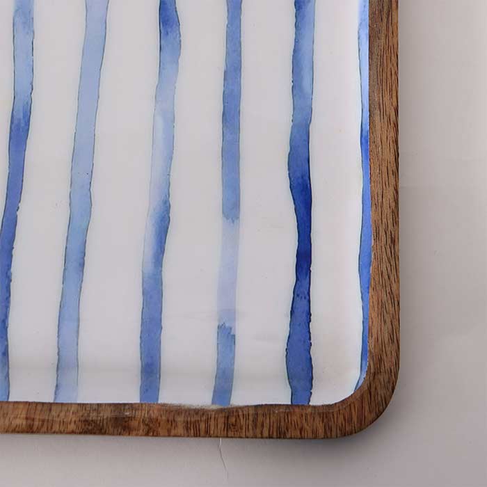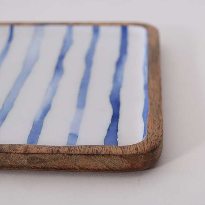 Vassoio quadrato, realizzato in legno di mango, con decorazione laccata lucida.