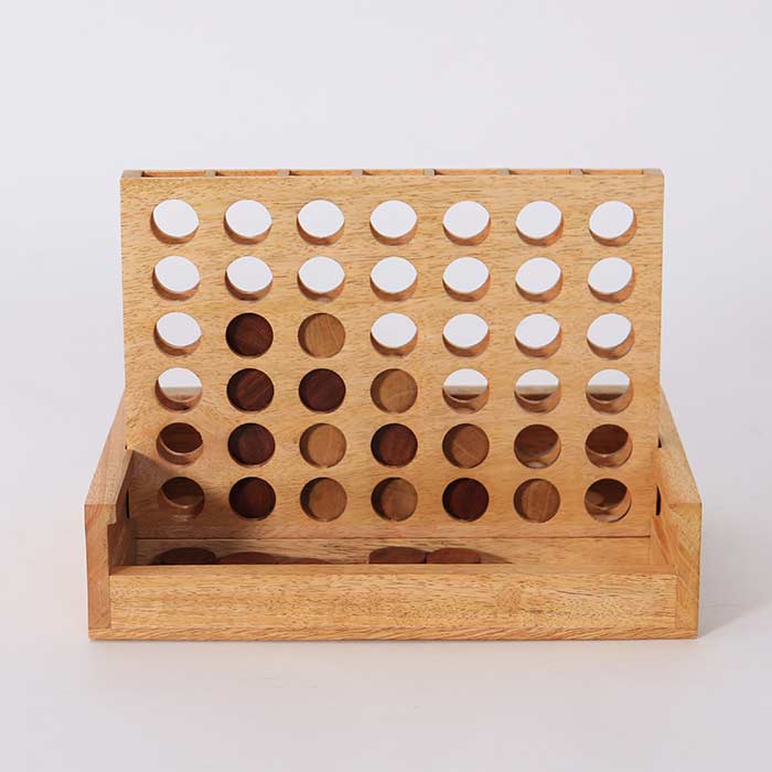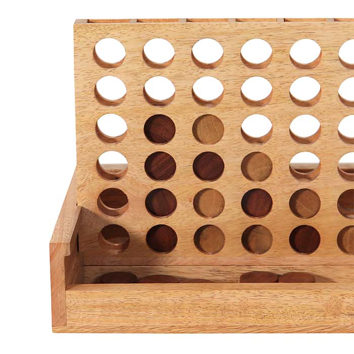 Gioco forza quattro, realizzato in legno di mango, finitura naturale, pedine in legno chiaro e scuro.