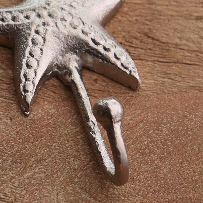 Appendino realizzato in alluminio, finitura argento anticato, con parte superiore a forma di stella marina.
