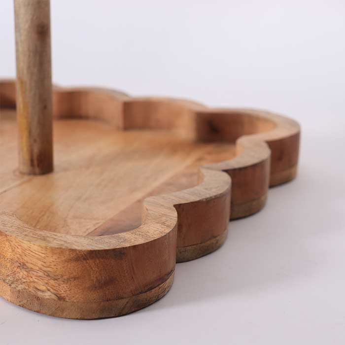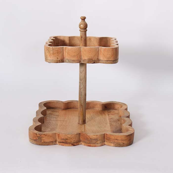 Alzata a due piani realizzata in legno di mango, finitura naturale.