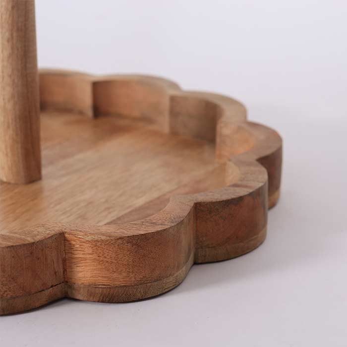 Alzata a due piani realizzata in legno di mango, finitura naturale.