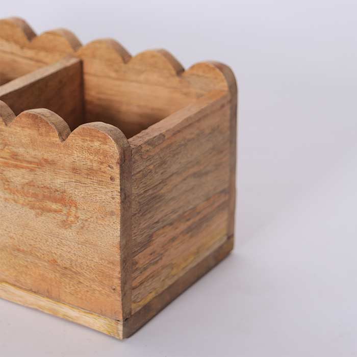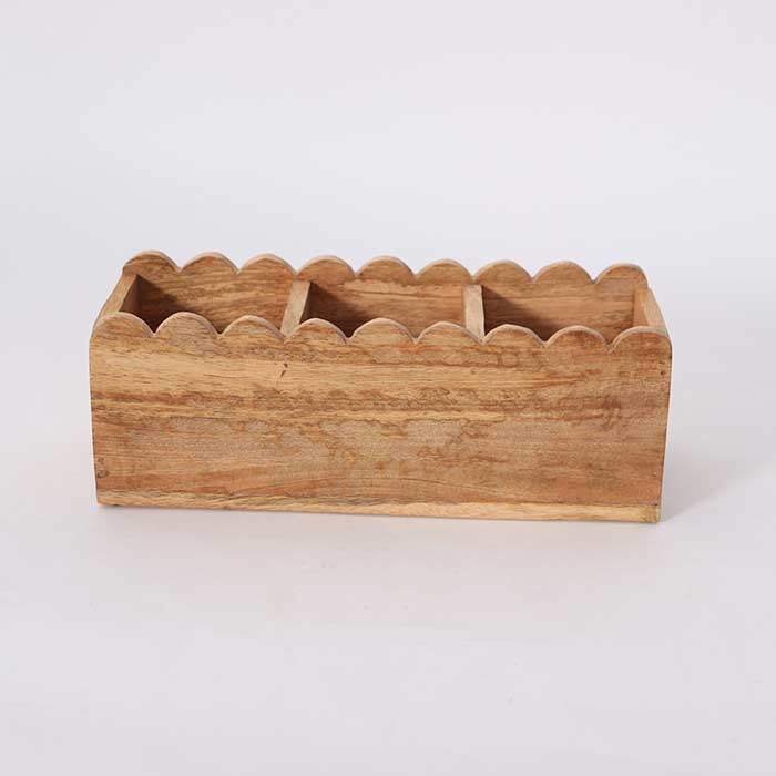 Contenitore con tre scomparti realizzato in legno di mango, finitura naturale.
