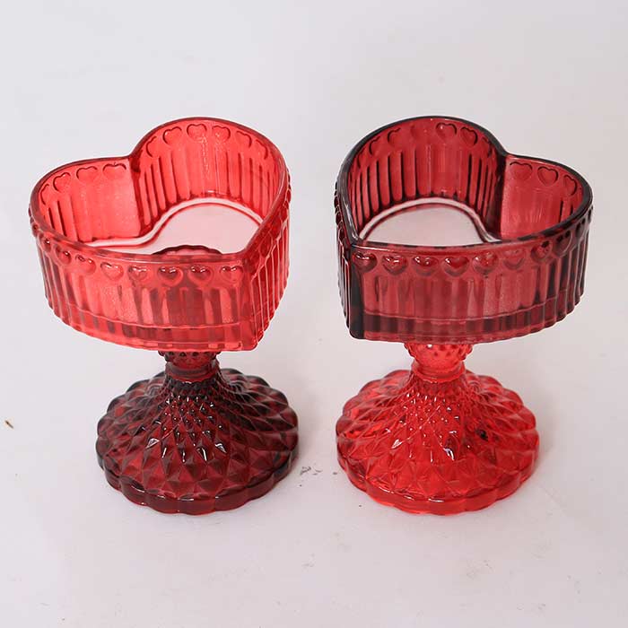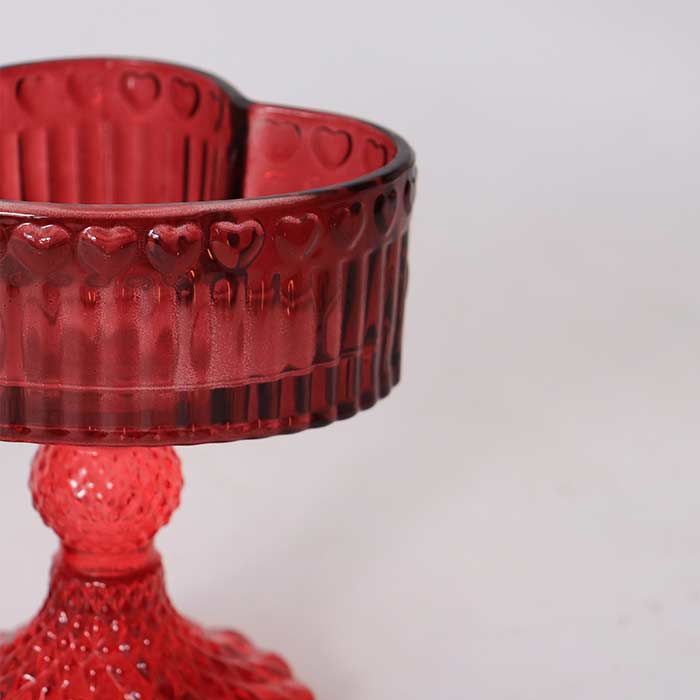 Portacandela a forma di cuore realizzato in vetro, disponibile in due sfumature di rosso.