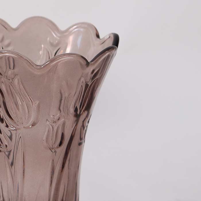Vaso a tema floreale, realizzato in vetro, disponibile in tre sfumature di marrone.
