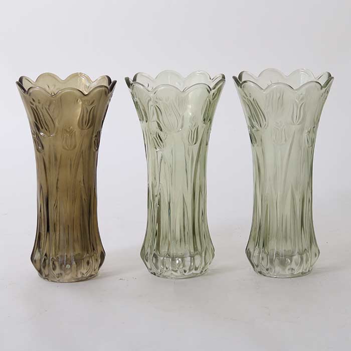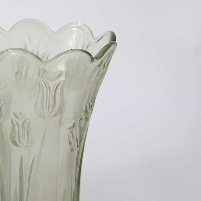 Vaso a tema floreale, realizzato in vetro, disponibile in tre sfumature di verde.