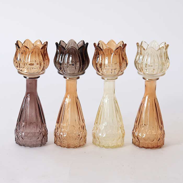Vaso a tema floreale, realizzato in vetro, disponibile in quattro sfumature di marrone.