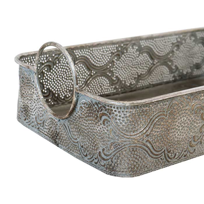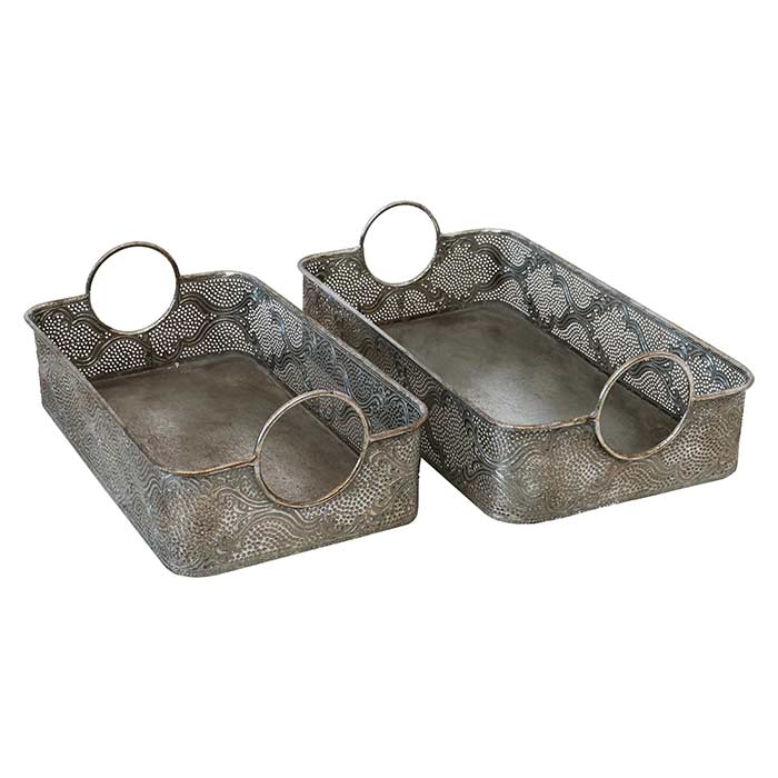 Set due vassoi rettangolari realizzati in metallo finitura argento anticata.