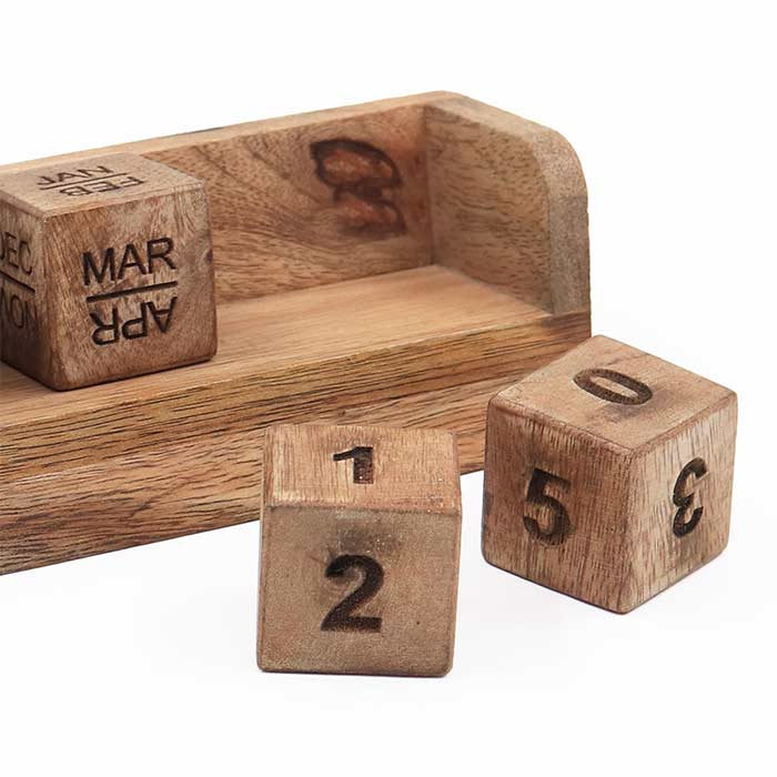 Calendario realizzato in legno di mango finitura naturale.