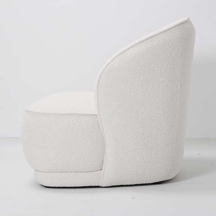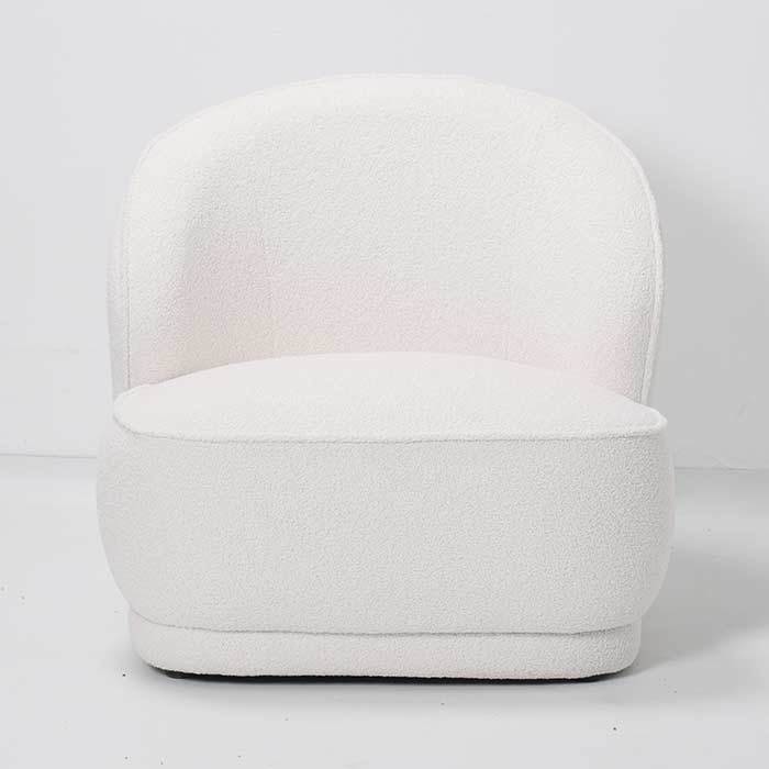Poltrona dal design moderno, realizzata in tessuto boucle color bianco.