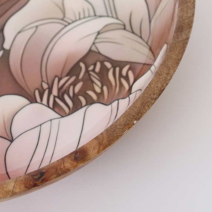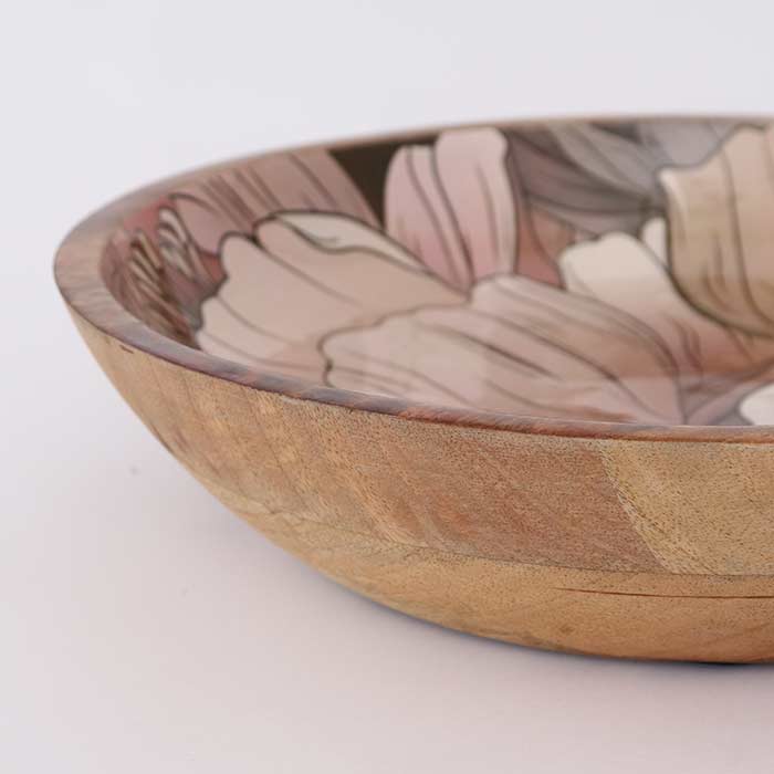 Ciotola tonda, realizzato in legno di mango, con decorazione laccata lucida.
