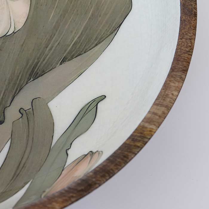 Ciotola tonda, realizzato in legno di mango, con decorazione laccata lucida.